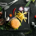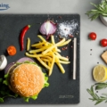 „Platou ardezie, patrat cu doua manere din inox 30x30cm,