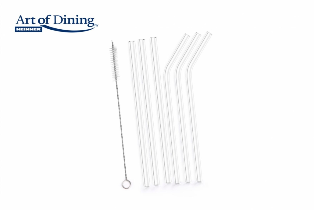 SET OF 6 STRAWS MADE OF GLASS + BRUSH FOR CLEANINGthe set contains: : 3 x straight straw + 3 x bent straw + 1 x brush forcleaningSiz es:200*8mmWeight / straw : 14.5gMaterial thickness:1.5 mmColor: transparent