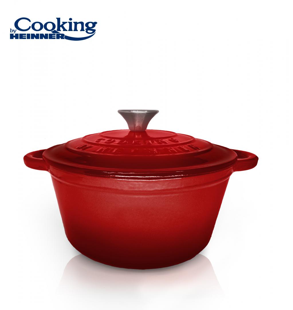 SEMIOALA FONTA EMAILATA+CAPAC 28X13 CM, 6L, RED LINE, COOKING BY HEINNER