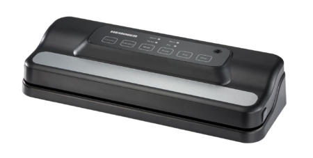 Aparat de vidat Heinner HAV-E110BKSL, vidare si sigilare, vidare uscata si umeda, functie sigilare, vidare caserole, control Touch, doua moduri: nromal/delicat, rola pungi 20x200mm inclusa, 5 pungi individuale 20x30 cm incluse, furtun pentru vidare caserole, cutter incorporat, comptaibil cu pungi latime max 30cm, capacitate vidare: 12L/min, presiune max: 80kpa, putere: 110W, negru cu decoratiune silver