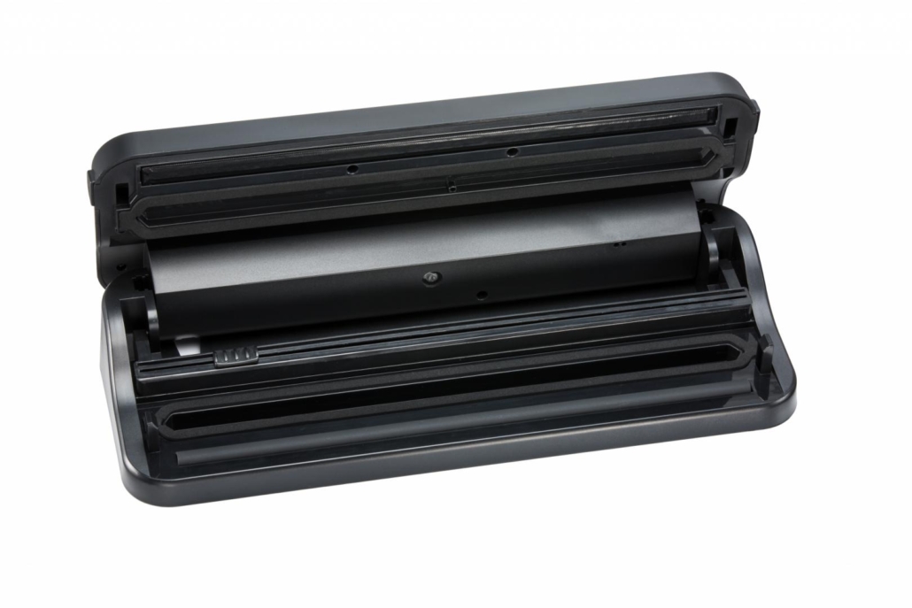 Aparat de vidat Heinner HAV-E110BKSL, vidare si sigilare, vidare uscata si umeda, functie sigilare, vidare caserole, control Touch, doua moduri: nromal/delicat, rola pungi 20x200mm inclusa, 5 pungi individuale 20x30 cm incluse, furtun pentru vidare caserole, cutter incorporat, comptaibil cu pungi latime max 30cm, capacitate vidare: 12L/min, presiune max: 80kpa, putere: 110W, negru cu decoratiune silver