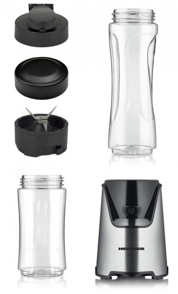 Blender sport Heinner HSB-T400SS, 400W, 19000RPM, recipient Tritan fara BPA 600ml, recipient Tritan fara BPA 400ml, doua capace "gata de plecare", buton ON/OFF, lame din inox, carcasa inox