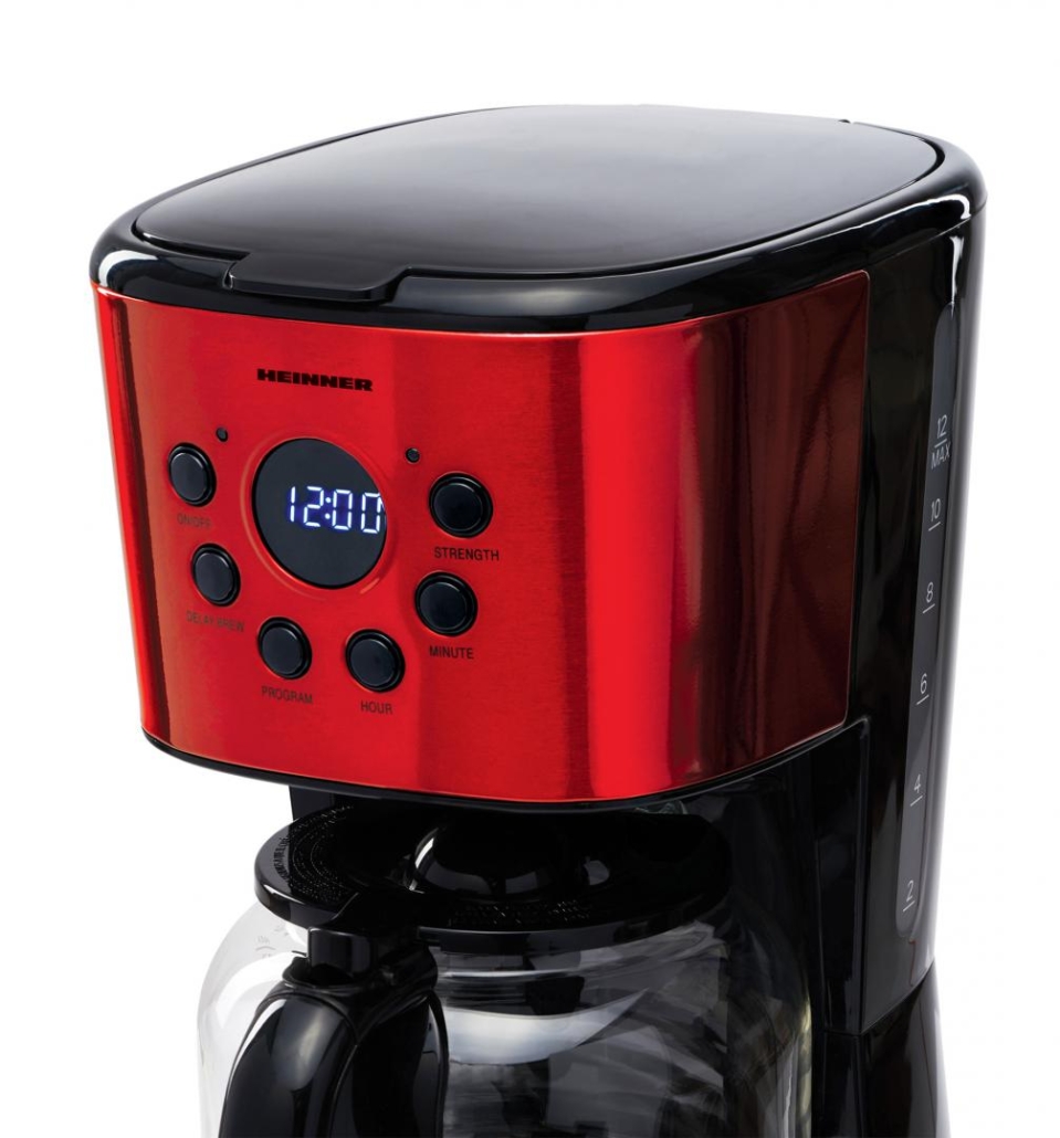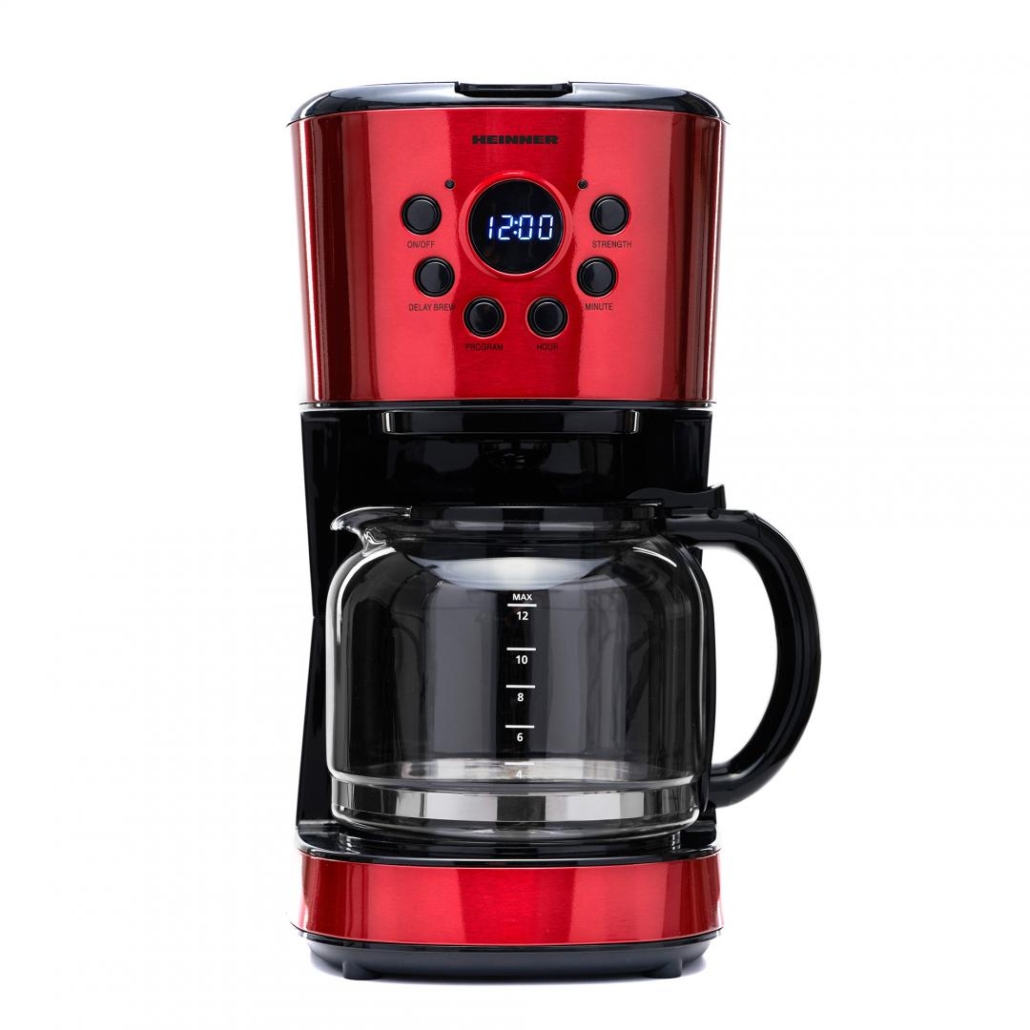 Cafetiera digitala Heinner HCM-1500RDIX, display LED, functie setare tarie cafea, timer programabil, capacitate: 1.5L, putere; 900W, plastic fara BPA, cana din sticla, filtru detasabil si lavabil, functie anti- picurare, auto-oprire dupa 40 min, protectie impotriva actionarii fara apa, inox, rosu