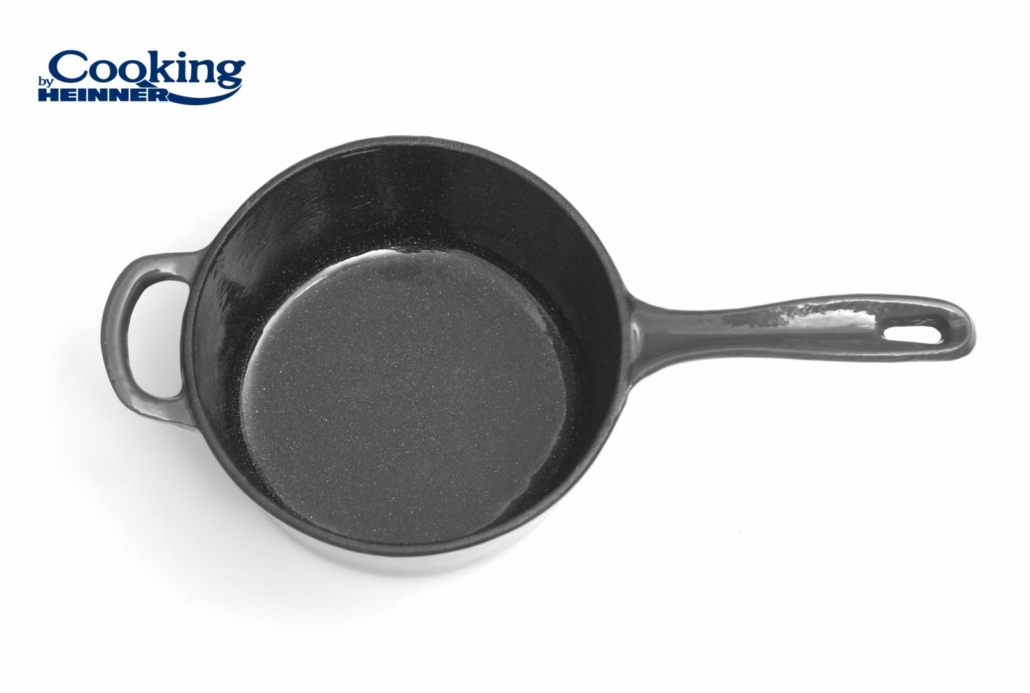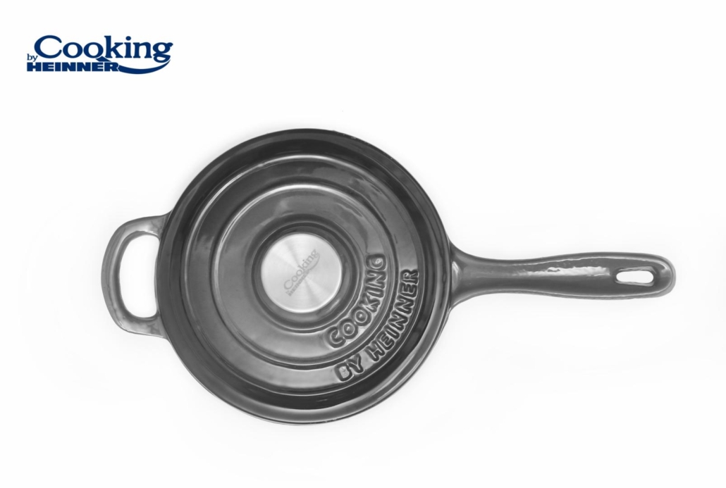 ENAMELED CAST IRON CASSEROLE + LID 19 X 9 CM MARBLE GREYCapacity:1.8LExterior coating : paint enamel gray gradientInterior coating:black enamel paint with white dotsknob material: stainless steel