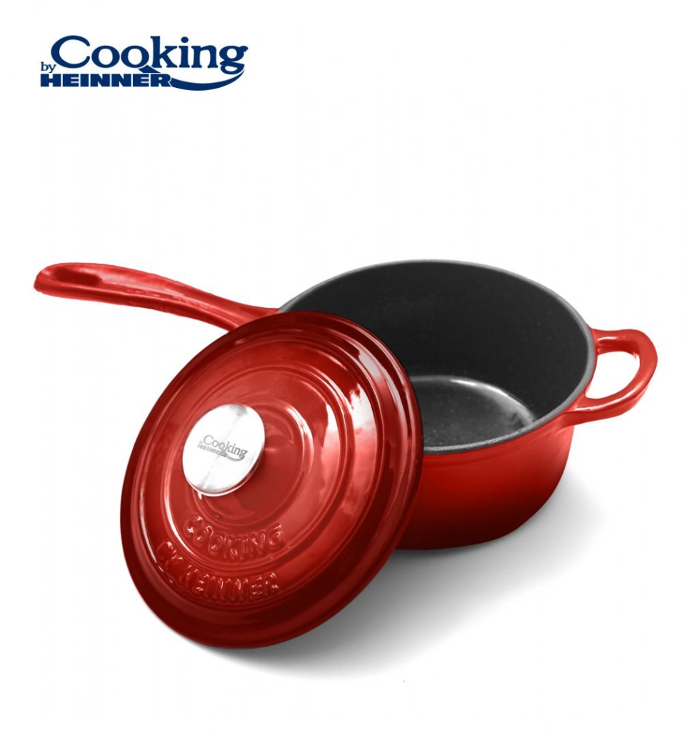 Caserola din fonta emailata este ideala pentru a pregati mancaruri gustoase atat pe aragaz cat si la cuptor .