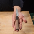 Designul exclusivist este completat de manerele din arbore de abanos cu insertii de nuc, ce ofera un aspect sofisticat si o prindere ergonomica, sigura si confortabila chiar si in utilizari indelungate. Echilibrul perfect dintre lama si maner transforma fiecare cutit intr-o extensie naturala a mainii tale.