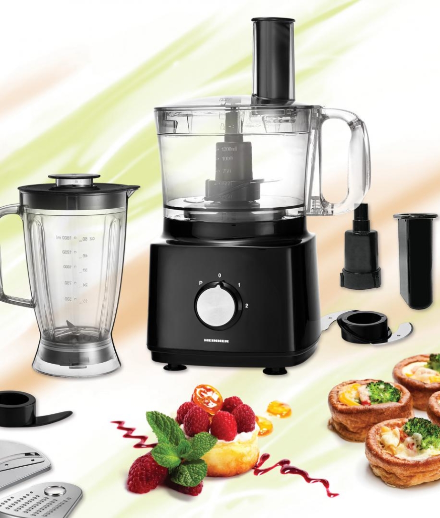 Robot de bucatarie Heinner HFP-750BK, putere: 750W, 2 viteze + Pulse, capacitate bol procesare: 1.2L, capacitate blender: 1.8L, accesorii pentru feliere, maruntire, unt si cartofi French, sistem de siguranta cu dubla inchidere, sistem anti-alunecare, nivel de zgomot: 85dB