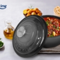 Semioala din fonta emailata este ideala pentru a pregatii mancaruri gustoase atat pe aragaz cat si la cuptor .