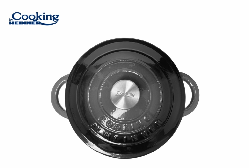 ENAMELED CAST IRON POT+LID 26 x 12 CM, 4.8 L MARBLE GREYCapacity:4.8 LExterior coating: paint enamel gray gradientInterior coating: black enamel paint with white dotsKnob material: stainless steel