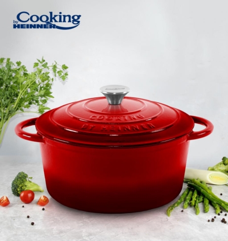 Semioala din fonta emailata este ideala pentru a pregatii mancaruri gustoase atat pe aragaz cat si la cuptor .