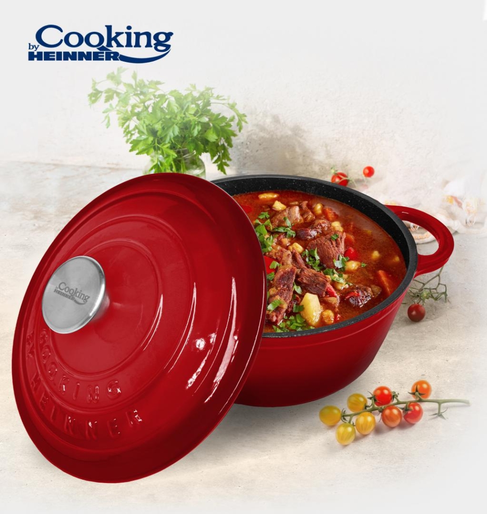Semioala din fonta emailata este ideala pentru a pregatii mancaruri gustoase atat pe aragaz cat si la cuptor .