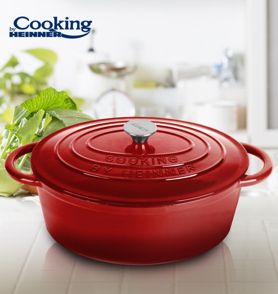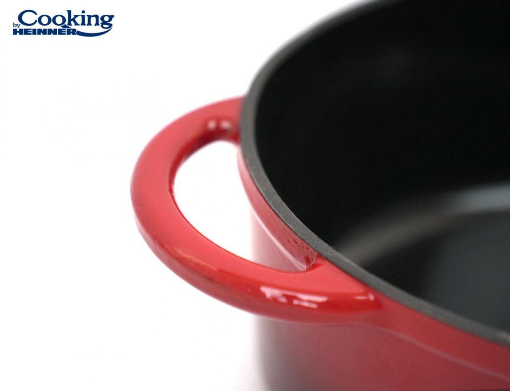 Acest vas este din fonta emailata. Vasele din fonta sunt sanatoase, durabile si avantajoase pe termen lung. Fonta are capacitate calorica mare, caldura inmagazinata se distribuie timp indelungat catre preparatul dumneavoastra, in mod constant si uniform, reducand considerabil consumul de energie.
