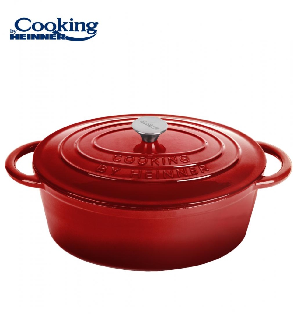 SEMIOALA FONTA EMAILATA OVALA+CAPAC 33.5x26X12 CM, 6L, RED LINE
