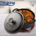 Material : fonta pura; grosime : 3.5 - 5.0 mm, vasele din fonta sunt sanatoase, durabile si avantajoase pe termen lung. fonta are capacitate calorica mare, caldura inmagazinata se distribuie timp indelungat catre preparat, in mod constant si uniform, reducand considerabil consumul de energie. interiorul emailat ajuta la evitarea lipirii mancarii de peretii vasului, precum si la o curatare mai usoara. gatitul in vase de fonta este sanatos si ecologic . se poate folosi inclusiv pe plitele cu inductie