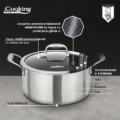 SEMIOALA INOX+CAPAC 24x12CM,5L,TITANIUM3 Material: inox in 3 straturi Interior: acoperire ceramica cu model HONEY tip plasa, rezistenta la zgarieturi Exterior: inox polisat Maner din inox Baza INDUCTIE"