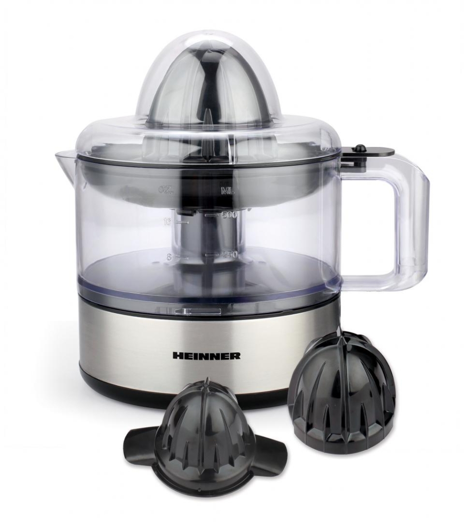 Storcator de citrice Heinner C300SS, capacitate: 0.5L, 2 conuri, filtru dublu, doua directii de rasucire, componente detasabile pentru curatare usoara, putere: 30W
