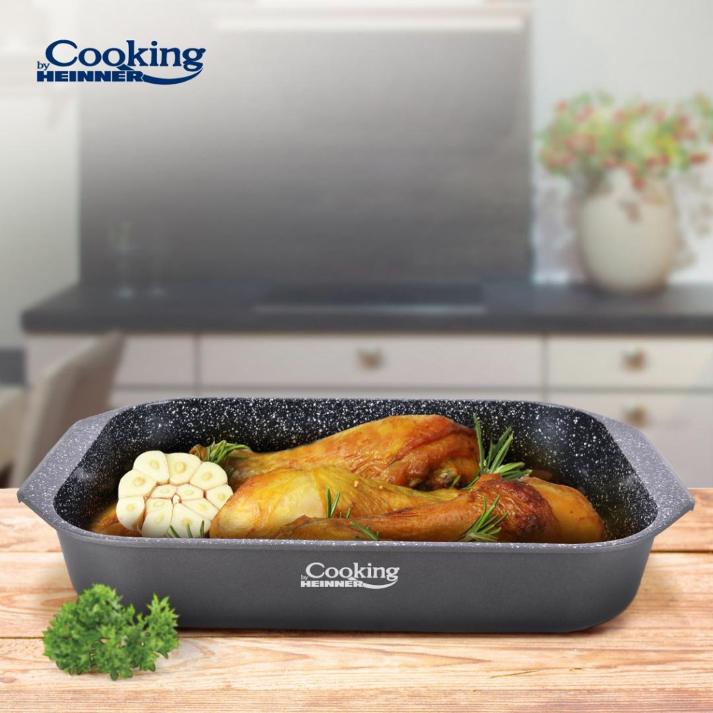 TAVA ALUMINIU 39.5x26x6.3 CM, DARK LINE Material: aluminiu turnat Interior: ceramica neagra Ambalaj: eticheta color