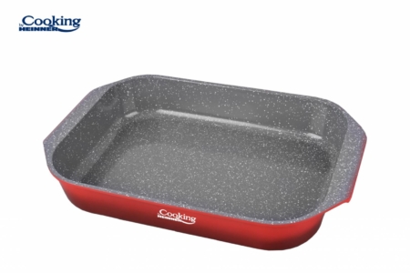 TAVA ALUMINIU 39.5x26x6.3 CM, RED LINE Material: aluminiu turnat Interior: ceramica gri 2 straturi cu aspect marmorat Ambalaj: eticheta color
