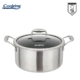 TIGAIE INOX 3 STRATURI 24X4.5,TITANIUM3 Material: inox in 3 straturi Interior: acoperire ceramica cu model HONEY tip plasa, rezistenta la zgarieturi Exterior: inox polisat Maner din inox Baza INDUCTIE"