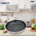 TIGAIE INOX 3STRATURI 28X5.5CM,TITANIUM3 Material: inox in 3 straturi Interior: acoperire ceramica cu model HONEY tip plasa, rezistenta la zgarieturi Exterior: inox polisat Maner din inox Baza INDUCTIE"