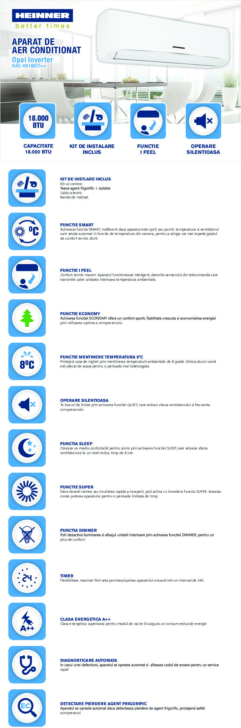 AER CONDITIONAT HEINNER HAC-HS18KIT++, 18000BTU, KIT INSTALARE INCLUS, CLASA RACIRE A++, C