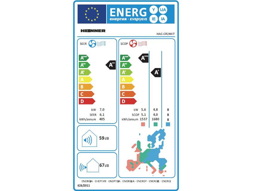Aparat de aer conditionat HEINNER Crystal HAC-CR24KIT, 24000BTU, kit instalare inclus, clasa energetica: racire A++/incalzire A+, functii: "follow me", functie mentinere temperatura 8⁰C, turbo, filtru cu densitate ridicata, autocuratare, alb