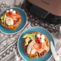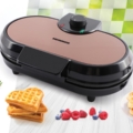 Aparat de fAcut gofre, putere: 1000 W, buton pentru reglarea temperaturii, placi cu invelis antiaderent, indicator luminos "ON", indicator luminos "gata de folosire", maner rece, placi gofre 13,97 cm