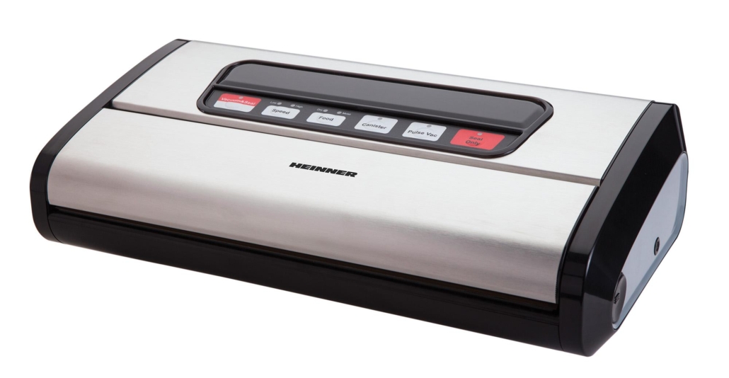 Aparat de vidat si sigilat Heinner HAV-165BKSS, vidare si sigilare , vidare uscata/umeda, functie sigilare , pompa dubla , sigilare dubla , control Touch , doua moduri: normal/delicat , functie Pulse , sistem racire banda sigilare , garnitura silicon , rola pungi inclusa 20x200 cm , furtun pentru caserole , cutter incorporat, spatiu depozitare rola pungi , compatibil cu pungi latime 32 cm , capacitate vidare: 16L/min , presiune: -0.85 bar , putere: 165W , carcasa inox