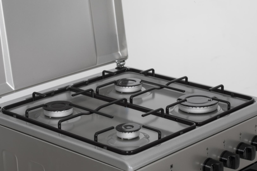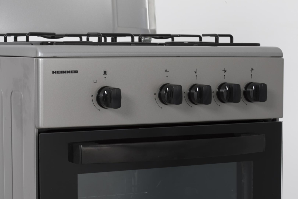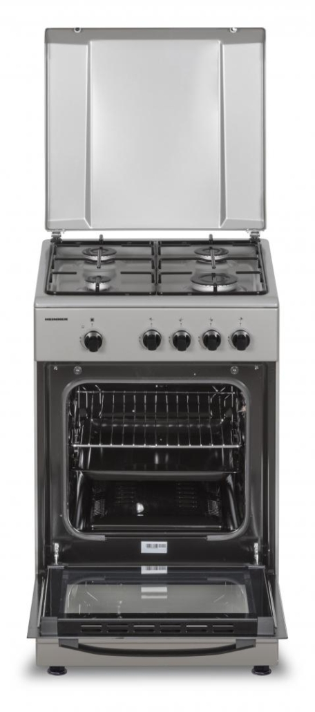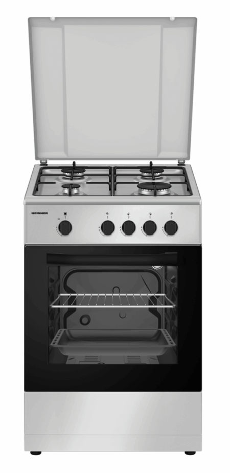 ARAGAZ GAZ HEINNER HFSC-SME50SL, 50X50CM, 4 ARZATOARE, SUPORT EMAIL, CAPAC METALIC, DISPOZITIV DE SIGURANTA PLITA SI CUPTOR, USA CUPTOR CU GEAM DUBLU, DUZE GPL INCLUSE, TAVA SI GRATAR CROMAT, CULOARE: ARGINTIU
