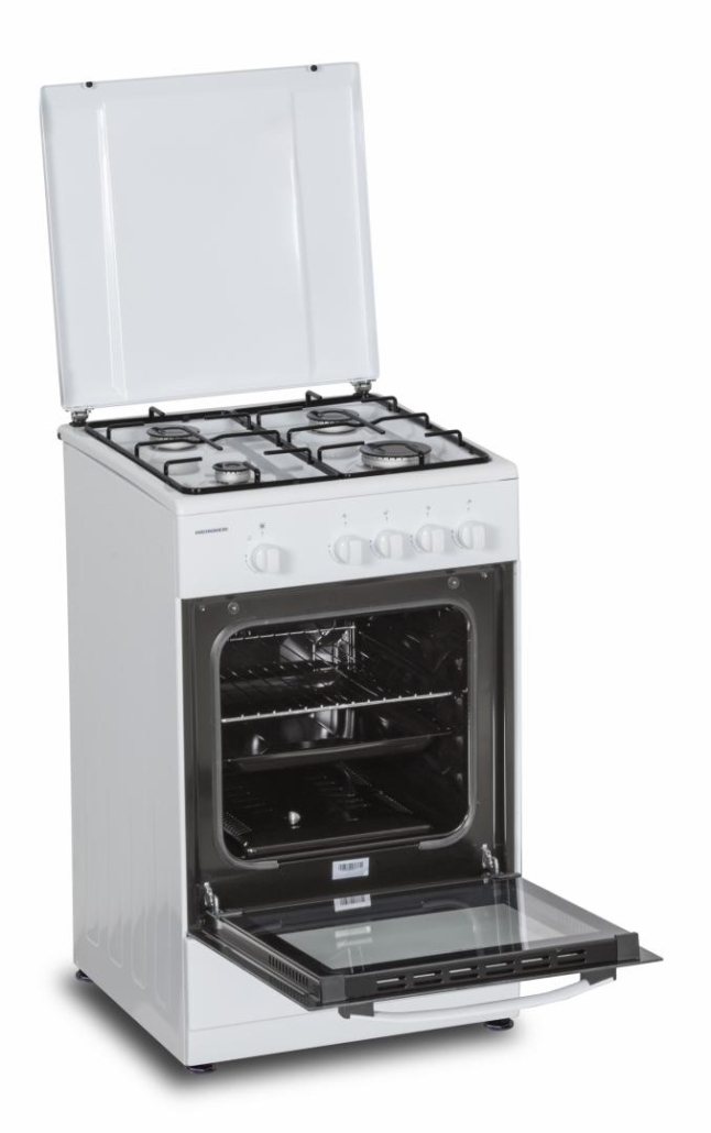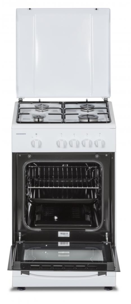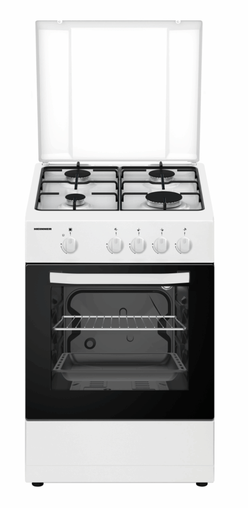ARAGAZ GAZ HEINNER HFSC-SME50WH, 50X50CM, 4 ARZATOARE, SUPORT EMAIL, CAPAC METALIC, DISPOZITIV DE SIGURANTA PLITA SI CUPTOR, USA CUPTOR CU GEAM DUBLU, DUZE GPL INCLUSE, TAVA SI GRATAR CROMAT, CULOARE: ALB