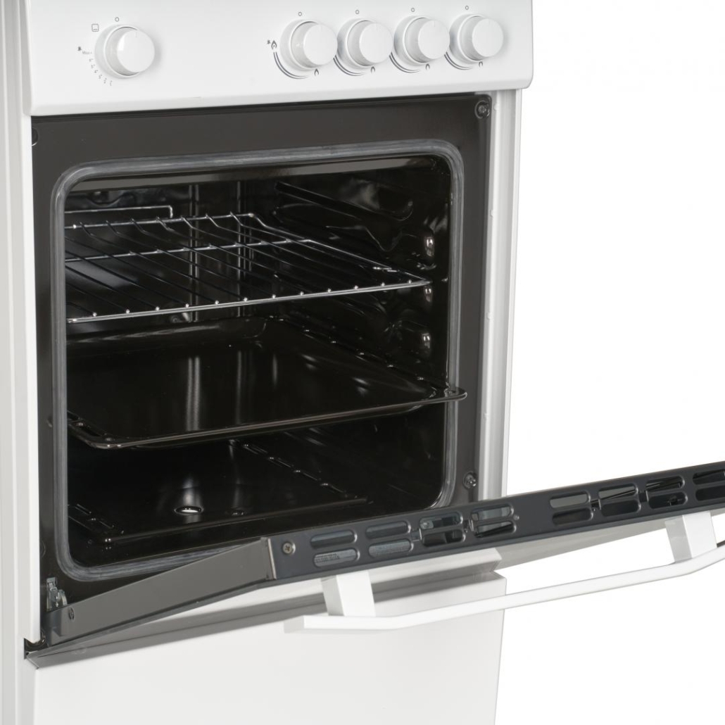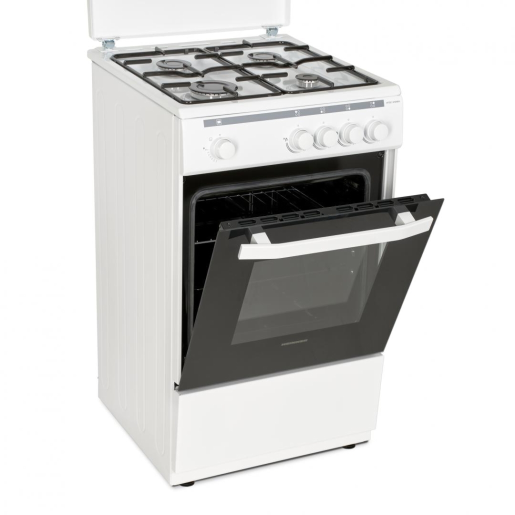 Aragaz Gaz Heinner HFSC-V50WH, 50x50cm, 4 arzatoare, Suport email, Capac metalic, Dispozitiv de siguranta plita si cuptor, Usa cuptor cu geam dublu, Duze GPL incluse, Tava si gratar cromat, Dimensiuni ( LxAxI): 50x49.5x85 cm, Culoare: Alb
