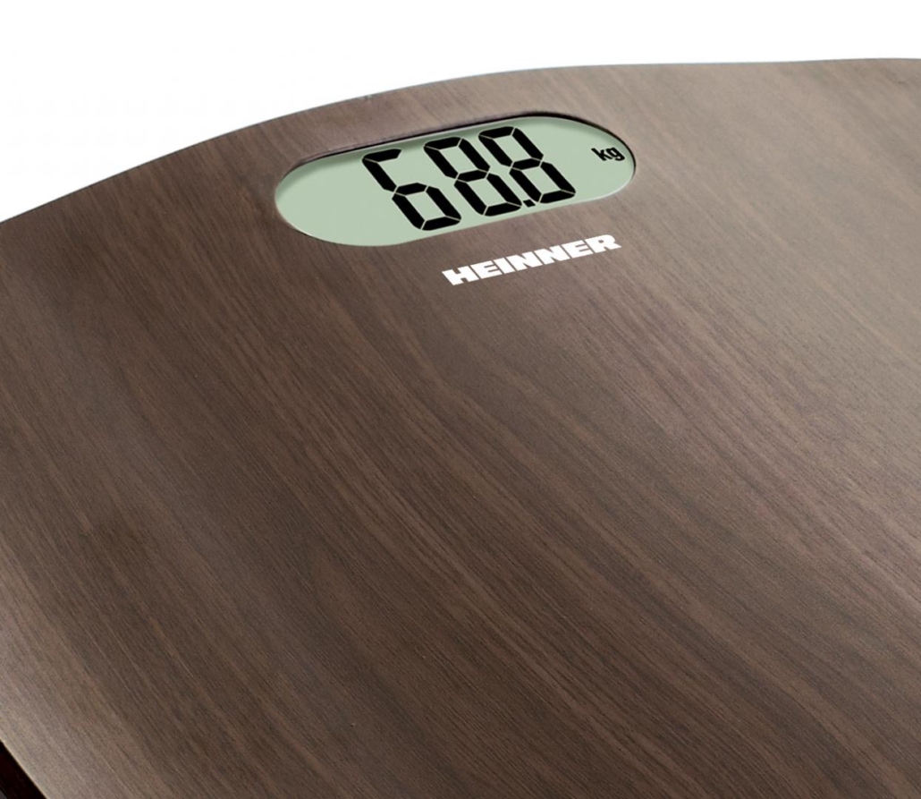 Cantar de baie Heinner Dark Bamboo 180 HBS-BRW180BB, platforma cu design de lemn, capacitate maxima: 180kg, display LCD, gradare: 100g, pornire /oprire automata, indicator baterie descarcata, baterii: 2xAAA