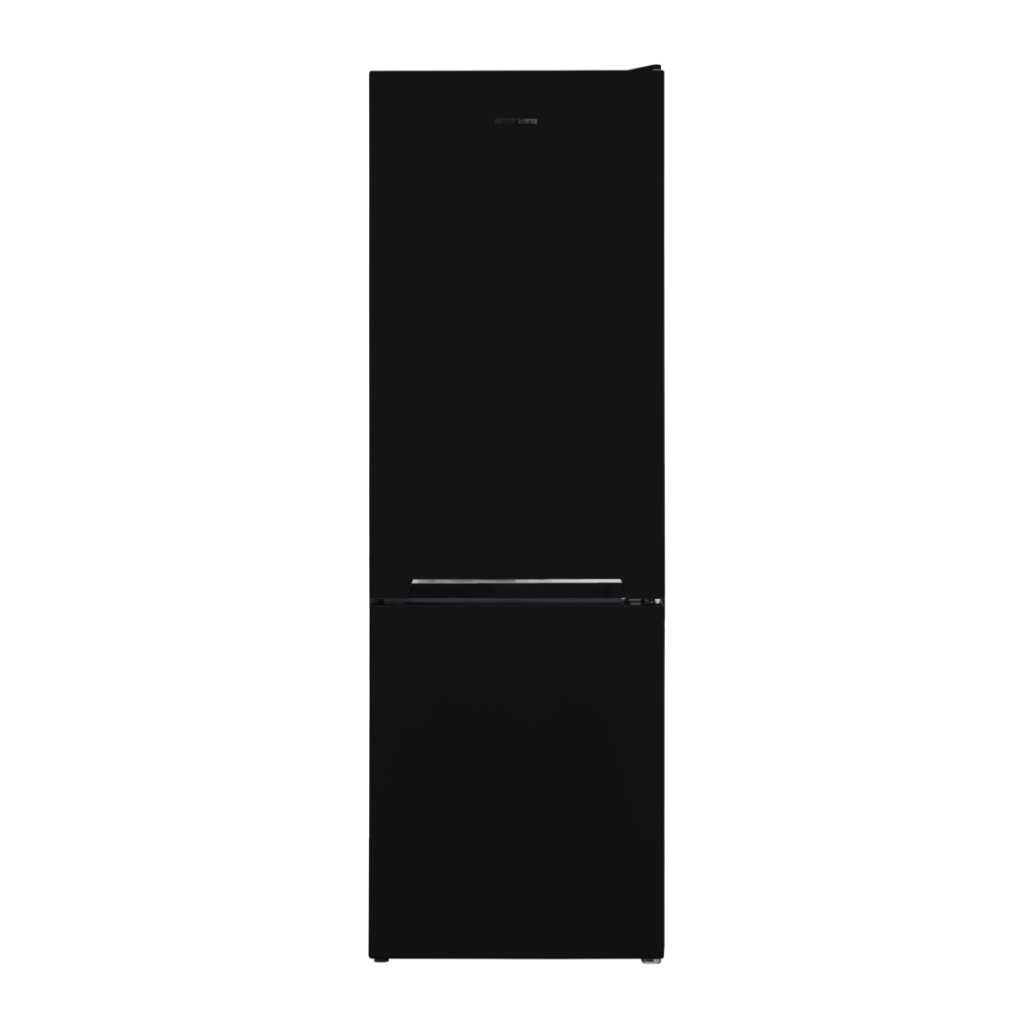 Combina frigorifica Heinner HC-V2681BKE++, clasa energetica: E, capacitate totala: 268L, capacitate frigider: 184L, capacitate congelator: 84L, control mecanic cu termostat ajustabil, lumina LED, 3 rafturi sticla frigider, 3 sertare congelator, compartiment pentru fructe si legume, usi reversibile, suport oua, tavita cuburi de gheata, capacitate congelare: 3.9kg/24h, dimensiuni: 54 x 59.5 x 170 cm, culaore: Negru cu decoratiune cromata pe maner