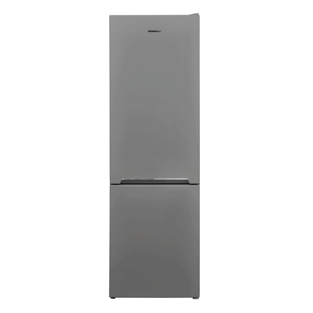 Combina frigorifica Heinner HC-V268SE++, Clasa energetica: E, Sistem de racire Less Frost, Capacitate totala: 268L, Capacitate frigider: 184L, Capacitate congelator: 84L, Control mecanic cu termostat ajustabil, Lumina LED, Functie “Super congelare”, 3 rafturi sticla frigider, 3 sertare congelator, Compartiment pentru fructe si legume, Usi reversibile, Suport oua, Tavita cuburi de gheata, Capacitate congelare: 3.9kg/24h, Dimensiuni (WxDxH): 54 x 59.5 x 170 cm, argintiu cu decoratiune cromata pe maner.