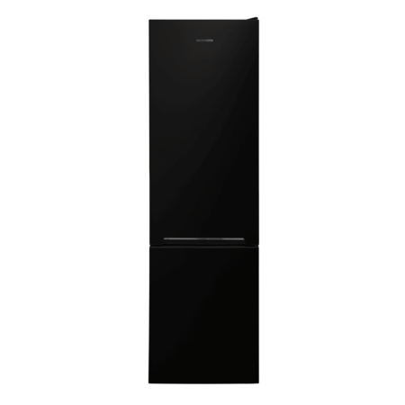 Combina frigorifica Heinner HC-V288BKE++, clasa energetica: E, sistem racire Less Frost, capacitate totala: 288L, capacitate frigider: 204L, capacitate congelator: 84L, control mecanic cu termostat ajustabil, lumina LED, 3 rafturi sticla frigider, compartiment pentru fructe si legume, 3 sertare congelator, usi reversibile, suport oua, tavita cuburi de gheata, capacitate congelare: 3.9kg/24h, Dimensiuni: 54 x 59.5 x 180 cm, culaore: Negru cu decoratiune cromata pe maner