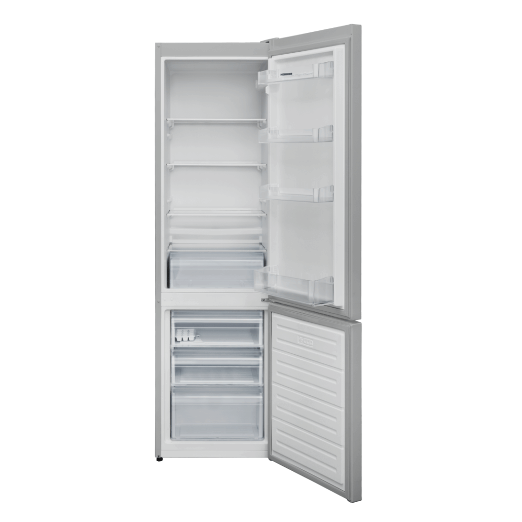 Combina frigorifica Heinner HC-V288SE++, clasa energetica: E, sistem racire Less Frost, capacitate totala: 288L, capacitate frigider: 204L, capacitate congelator: 84L, control mecanic cu termostat ajustabil, lumina LED, 3 rafturi sticla frigider, compartiment pentru fructe si legume, 3 sertare congelator, usi reversibile, suport oua, tavita cuburi de gheata, capacitate congelare: 3.9kg/24h, dimensiuni: 54 x 59.5 x 180 cm, Culoare: Argintiu cu decoratiune cromata pe maner