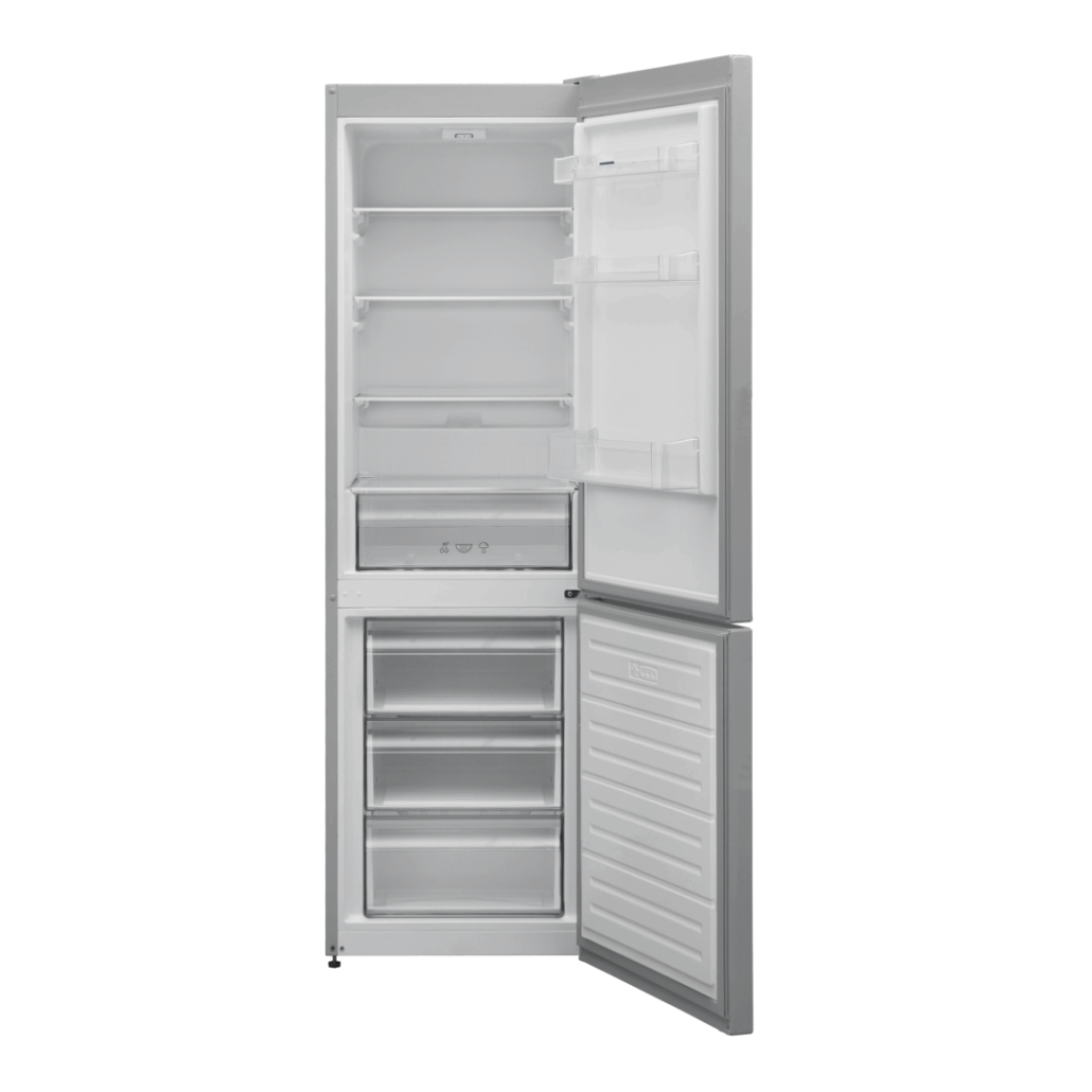 Combina frigorifica Heinner HC-V341XE++, clasa energetica: E, sistem de racire Less Frost, capacitate totala: 340L, capacitate frigider: 233L, capacitate congelator: 107L, control mecanic cu termostat ajustabil, lumina LED, functie “Super congelare”, 3 rafturi sticla frigider, compartiment pentru fructe si legume cu control umiditate, 3 sertare congelator, usi reversibile, suport oua, tavita cuburi gheata, capacitate congelare: 5.2kg/24h, dimensiuni (WxDxH): 59.5 x 65 x 186 cm, aspect inox cu decoratiune cromata pe maner