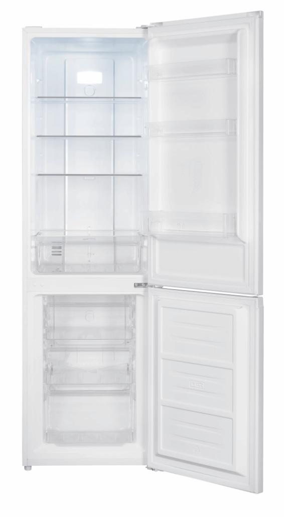 Combina frigorifica Heinner HCNF-HM253E++, No Frost, clasa energetica E, capacitate totala: 253 L, capacitate frigider: 182 L, capacitate congelator: 71 L, control electronic cu termostat ajustabil, lumina LED, 3 rafturi din sticla frigider, compartiment pentru fructe si legume, 3 sertare congelator, usi reversibile, suport oua, tavita cuburi gheata, capacitate de congelare: 3.2kg/24h, dimensiuni (LxAxI): 54 x 60 x 180cm, culoare: Alb