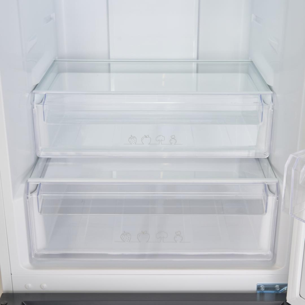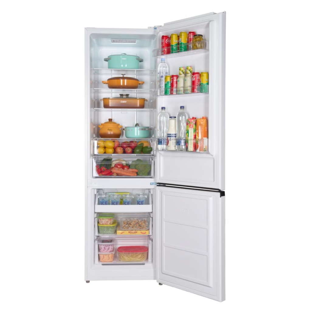 Combina frigorifica Heinner HCNF-HM326E++, Total No Frost, clasa energetica E, capacitate totala: 326 L, capacitate frigider: 243 L, capacitate congelator: 83 L, control electronic cu termostat ajustabil, lumina LED, functie Super congelare, 3 rafturi din sticla frigider, compartiment pentru fructe si legume, 3 compartimente congelator, suport oua, tavita cuburi gheata, capacitate de congelare: 3.8kg/24h, dimensiuni (WxDxH): 60 x 60 x 201 cm, culoare: Alb