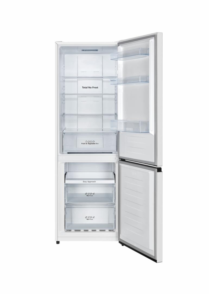 Combina frigorifica Heinner HCNF-HS292F+, No Frost, sistem Multi Air Flow, clasa energetica F, capacitate totala: 292L, capacitate frigider: 207L, capacitate congelator: 85L, control electronic cu display in interior, functie Vacanta, functie Congelare rapida, lumina LED, 3 rafturi din sticla frigider, compartiment fructe si legume, 2 sertare congelator + tavita pizza, suport oua, tavita cuburi de gheata, capacitate de congelare: 5 kg/24h, dimensiuni (WxDxH): 59.5 x 59 x 178.5 cm, culoare: Alb cu maner negru
