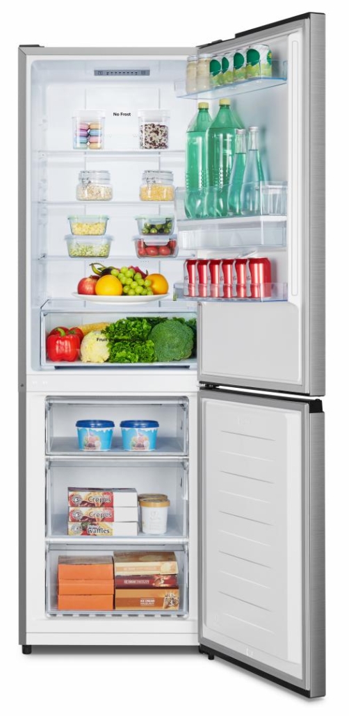 Combina frigorifica Heinner HCNF-N300XWDF+, Total No Frost, Dozator de apa, Clasa energetica F, Capacitate totala: 304 L, Capacitate frigider: 207 L, Capacitate congelator: 97 L, Control electronic cu display in interior, Lumina LED, Functie Vacanta, Functie congelare rapida, 3 rafturi din sticla frigider, Compartiment pentru fructe si legume, 3 sertare congelator, Capacitate de congelare: 6kg/24h, Dimensiuni (WxDxH): 59.5 x 59 x 186cm, Culoare: Aspect Inox