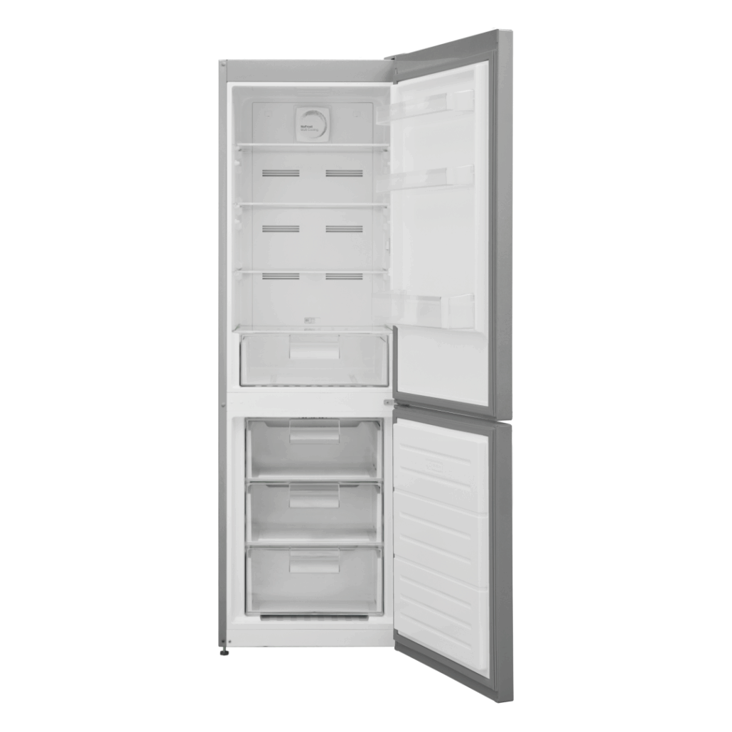 Combina frigorifica Heinner HCNF-V291SF+, No Frost Multicooling, clasa energetica F, capacitate totala: 294 L, capacitate frigider: 207 L, capacitate congelator: 87 L, control electronic cu display in interior, tehnologie Freezer Shield, lumina LED, functie ECO, functie congelare rapida, alarma usa deschisa, 3 rafturi din sticla frigider, compartiment convertibil (chiller/fructe si legume), 3 sertare congelator, suport oua, tavita cuburi gheata, capacitate de congelare: 5kg/24h, dimensiuni (WxDxH): 59.5 x 60 x 186cm, culoare: argintiu cu decoratiune cromata pe maner