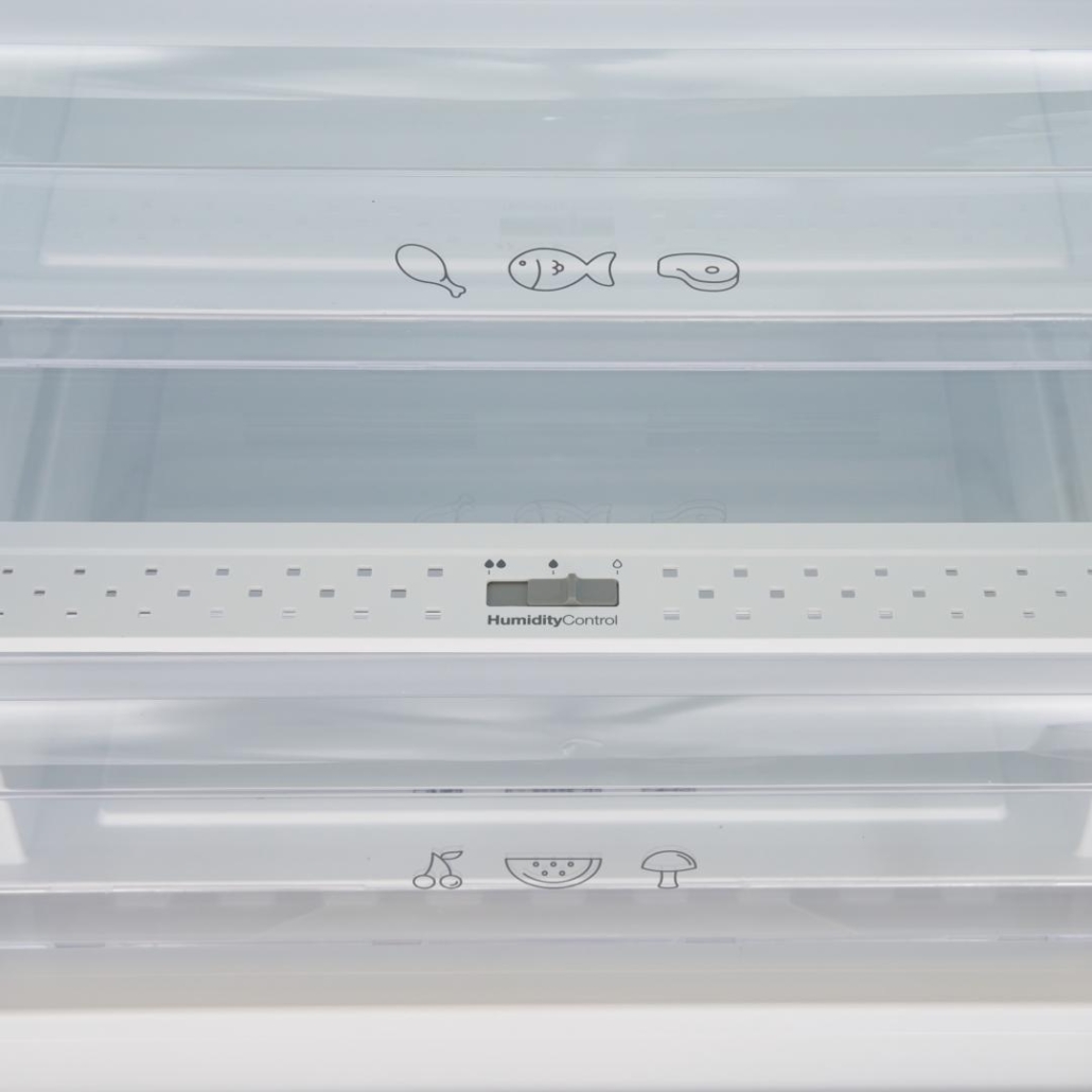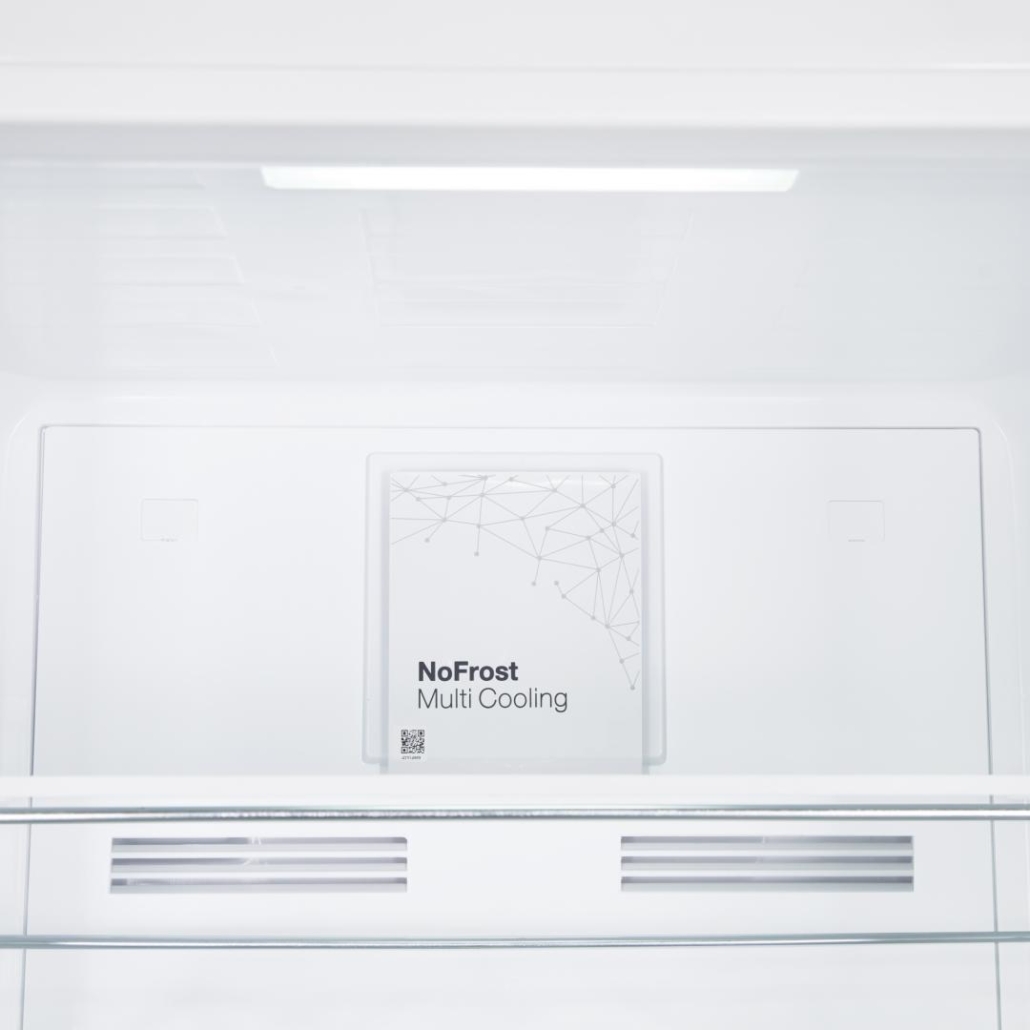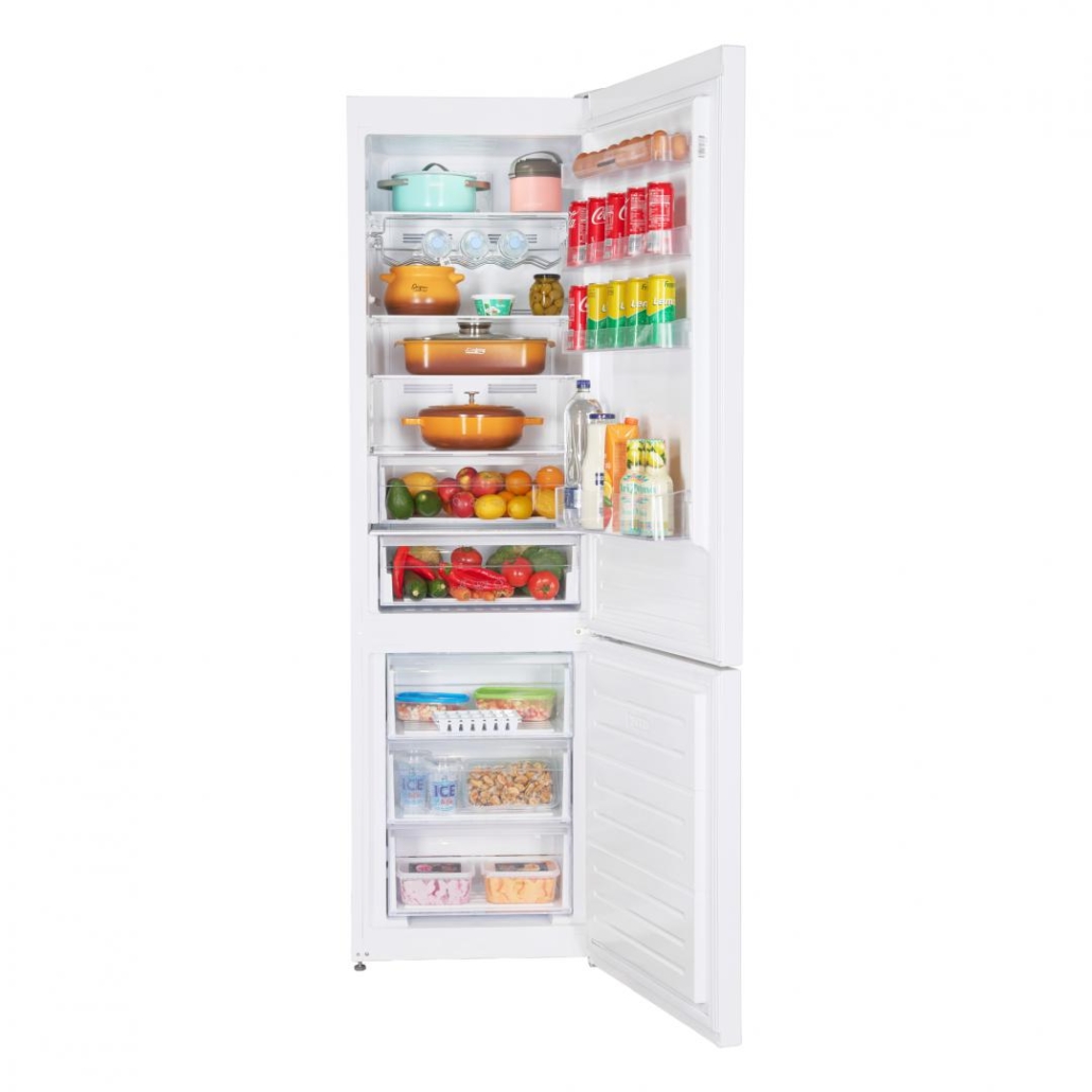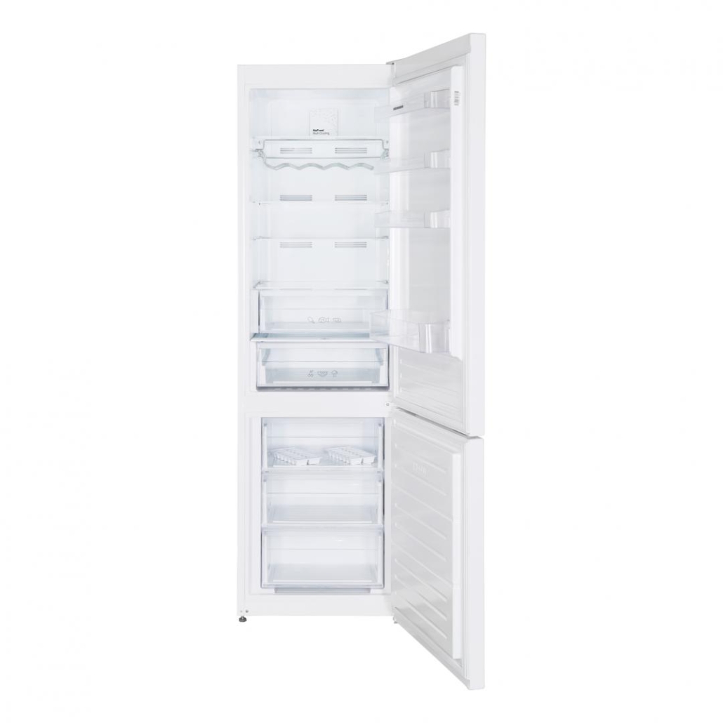 Combina frigorifica Heinner HCNF-V366E++, No Frost Multicooling, clasa energetica E, capacitate totala: 366 L, capacitate frigider: 265 L, Capacitate congelator: 101 L, display pe usa, control electronic, tehnologie Freezer Shield, lumina LED, functie congelare rapida, alarma usa deschisa, sertar Chiller, compartiment fructe si legume cu control umiditate, 3 rafturi din sticla frigider, 3 sertare congelator, suport oua, tavita cuburi gheata, capacitate de congelare: 8kg/24h, dimensiuni (WxDxH): 59.5 x 65 x 201cm, culoare: alb cu decoratiune cromata pe maner