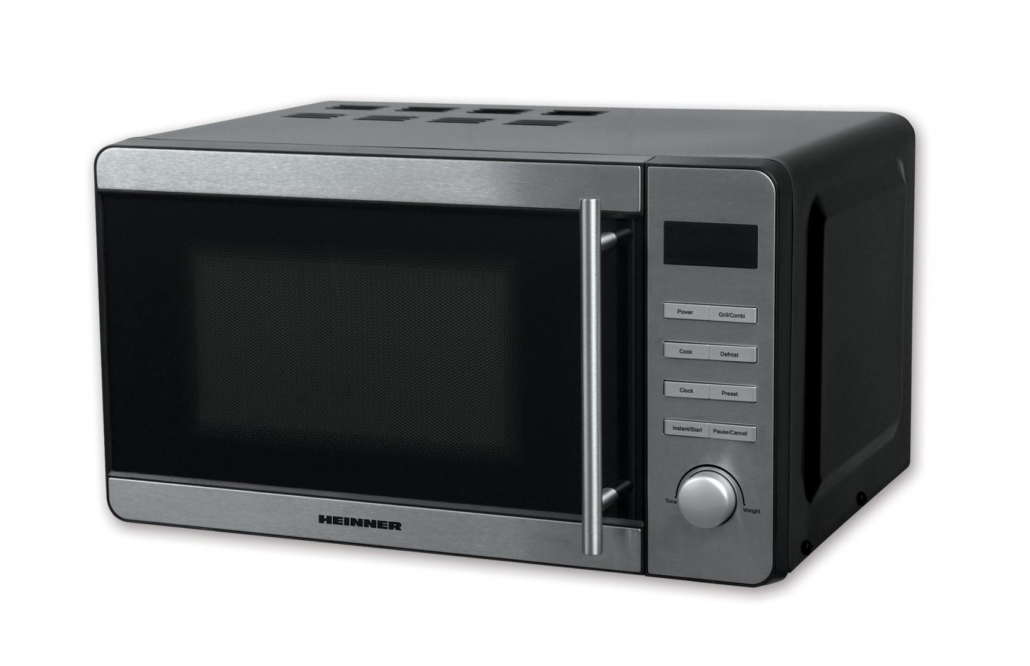 Cuptor cu microunde Heinner HMW-20DBKSS, Capacitate 20L, Control digital, Display LED, Putere cuptor 700W, Putere grill 800W, 5 trepte de putere, 8 programe de gatire automate, Timer, Timp maxim de gatire 60 min, Functie decongelare, Semnal sonor la finalizarea programului, Blocare acces copii, Diametru platou rotativ 245mm, Dimensiuni ( LxAxI): 45.1x35x25.8 cm, Culoare: Negru-Inox