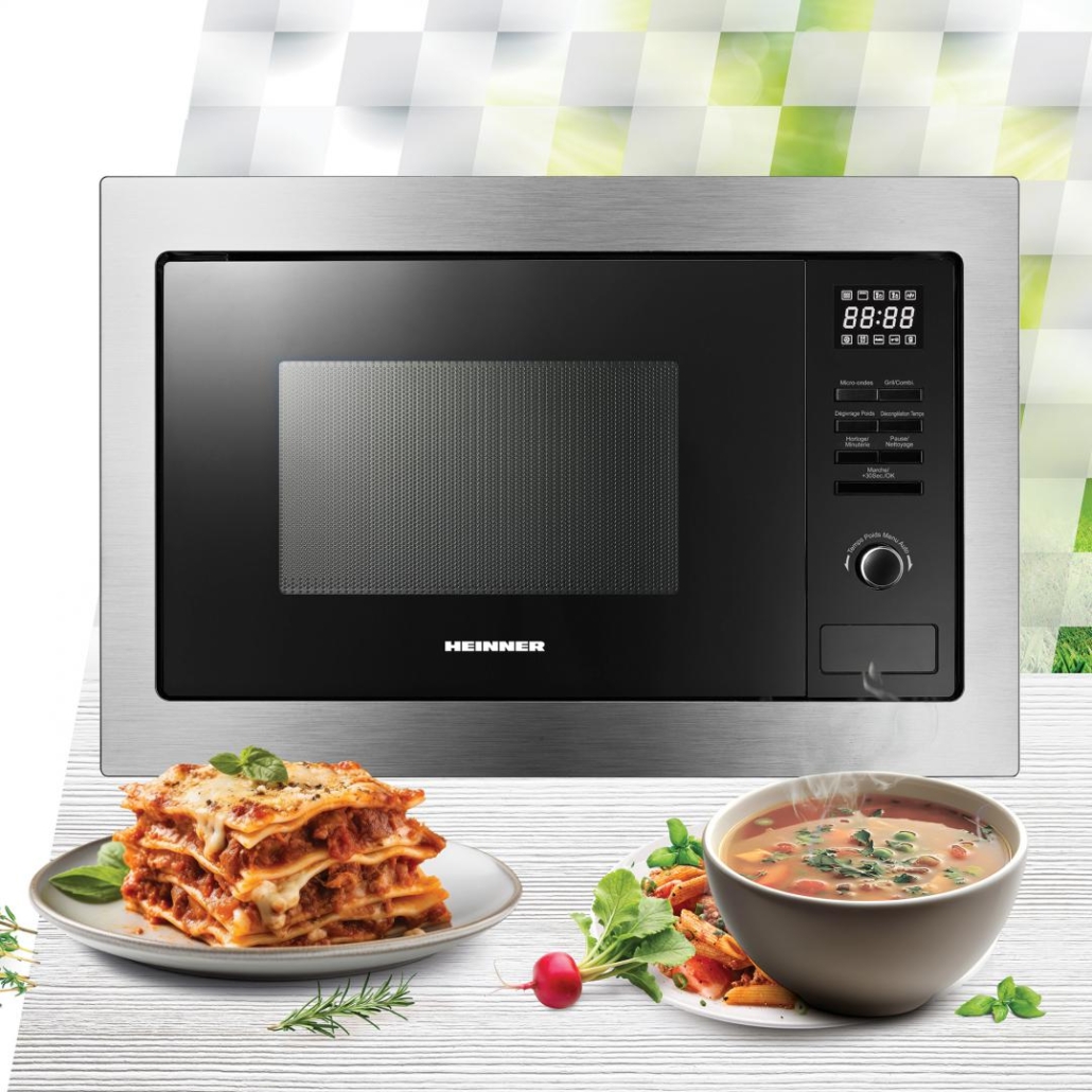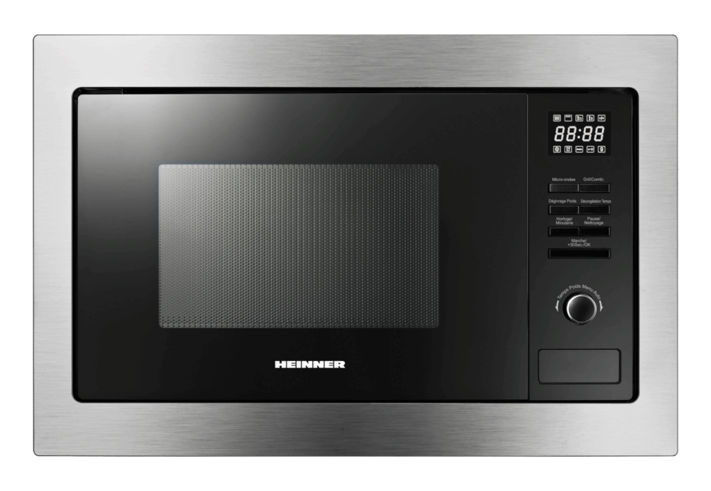 CUPTOR CU MICROUNDE INCORPORABIL HEINNER HMW-MDBI25GDIX, CAPACITATE 25L, CONTROL DIGITAL, AFISAJ DIGITAL, PUTERE CUPTOR: 900W, PUTERE GRILL: 1000W, 5 TREPTE DE PUTERE, 10 PROGRAME AUTOMATE, TIMER, TIMP MAXIM DE GATIRE 95 MIN, FUNCTIE DECONGELARE, PROGRAM GATIRE RAPIDA, SEMNAL SONOR LA FINALIZAREA PROGRAMULUI, DIAMETRU PLATOU ROTATIV 315MM, DIMENSIUNI ( LXAXI): 59.5 x 40 x 38.8 CM, CULOARE: INOX/NEGRU