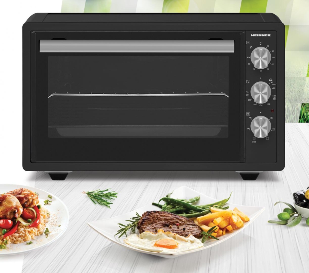 Cuptor electric Heinner HCE-S37DKA, Capacitate 37L, 6 functii, Putere cuptor 1650W, Temperatura maxima de gatire 220 °C, Timer, Grill, Coacere, Gatire asistata de ventilatie, Functie decongelare, Fermentare iaurt, Iluminare, Durata maxima de gatire 90 min, Semnal sonor la finalizarea programului, Gratar sarma, Tava, Standard A13, Dimensiuni ( LxAxI): 53.2x45.9x33.2 cm, Culoare: Gri antracit