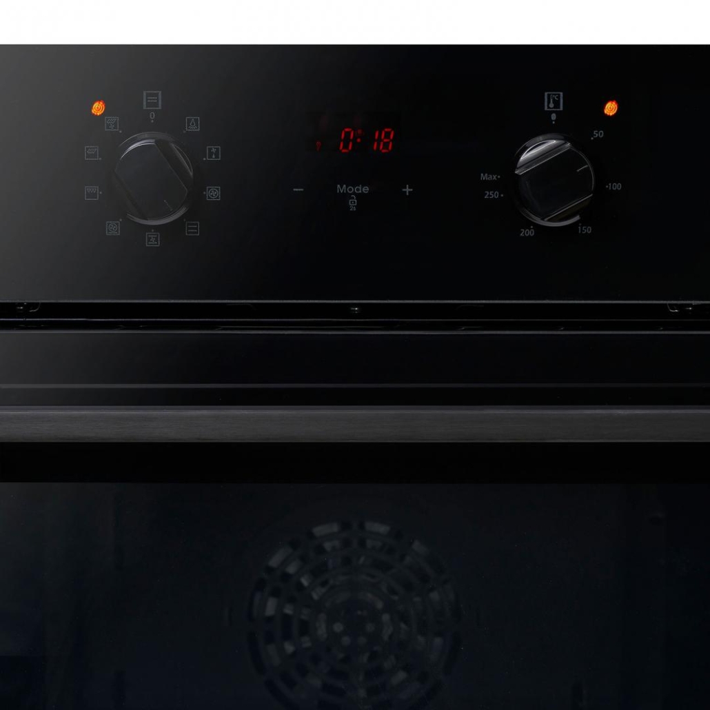 Cuptor incorporabil Heinner HBO-V659GCDRC-GBK, Multifunctional, Capacitate 69L, 9 functii, Clasa energetica A, Timer digital, Display touch+butoane, Grill rapid, Gatire asistata de ventilatie, Functie Turbo, Functie Pizza, Functie dezghetare, Iluminare, Blocare display, Autocuratare catalitica, Geam triplu detasabil, Grilaj metalic lateral, Gratar sarma, Tava, Dimensiuni (LxAxH): 59.5x55.0x59.5 cm, Culoare: Sticla Neagra