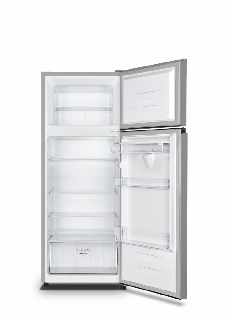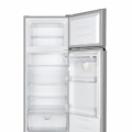 Frigider cu doua usi Heinner HF-205SWDF+, clasa energetica: F, dozator de apa, capacitate totala: 206L, capacitate frigider: 165L, capacitate congelator: 41L, control mecanic cu termostat reglabil, lumina LED, 3 rafturi din sticla, compartiment pentru fructe si legume, usi reversibile, suport oua, tavita cuburi de gheata, capacitate congelare: 2kg/24h, dimensiuni (WxDxH): 55 x 54.2 × 143.4 cm, culoare: argintiu cu maner elegant negru