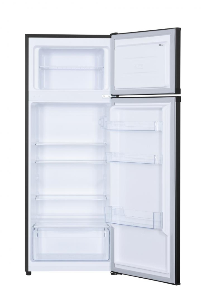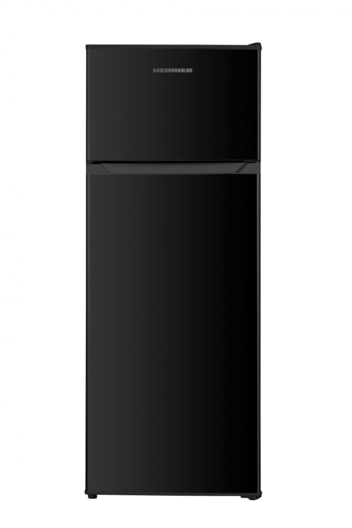 Frigider cu doua usi Heinner HF-H2206BKE++, clasa energetica: E, capacitate totala: 206L, capacitate frigider: 169L, capacitate congelator: 37L, control mecanic cu termostat ajustabil, lumina LED, 3 rafturi sticla frigider, compartiment pentru fructe si legume, usi reversibile, suport oua, capacitate congelare: 2.4kg/24h, dimensiuni (WxDxH): 54.5 x 55.5 x 143 cm, culoare: Negru