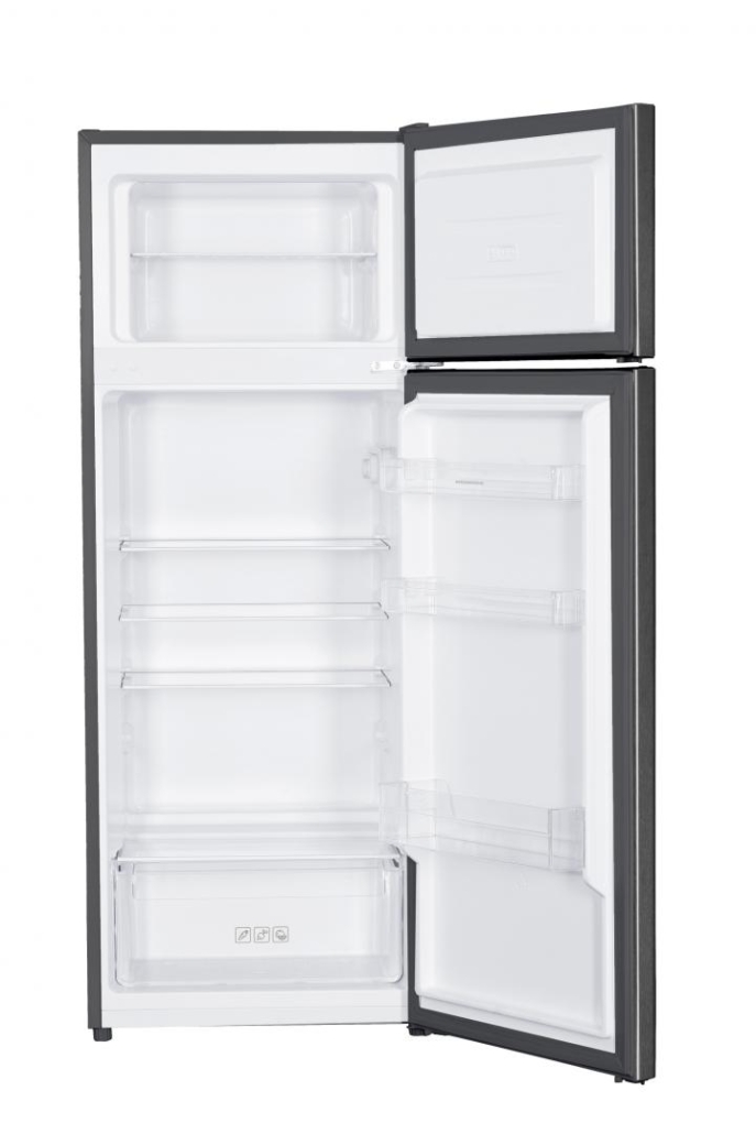 Frigider cu doua usi Heinner HF-H2206BKF+, clasa energetica: F, capacitate totala: 206L, capacitate frigider: 169L, capacitate congelator: 37L, control mecanic cu termostat ajustabil, lumina LED, 3 rafturi sticla frigider, compartiment pentru fructe si legume, usi reversibile, suport oua, capacitate congelare: 2.4kg/24h, dimensiuni (WxDxH): 54.5 x 55.5 x 143 cm, culoare: Negru